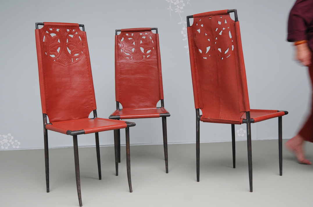 Chaise «Rouge» en fer forgé avec cuir ajouré et décoré : 1.520,00€ TVAc pièce Autres couleurs de cuir :