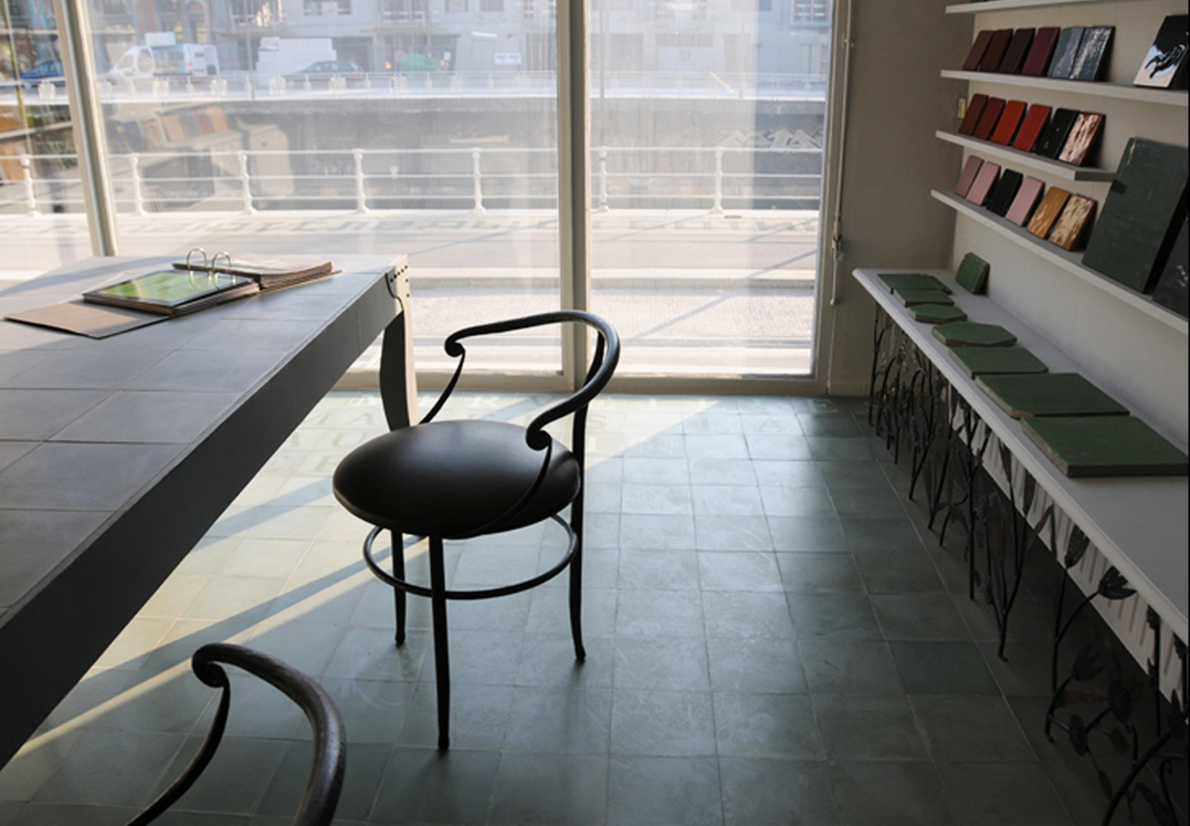 «Aimable» fauteuil en fer forgé et assise en cuir :