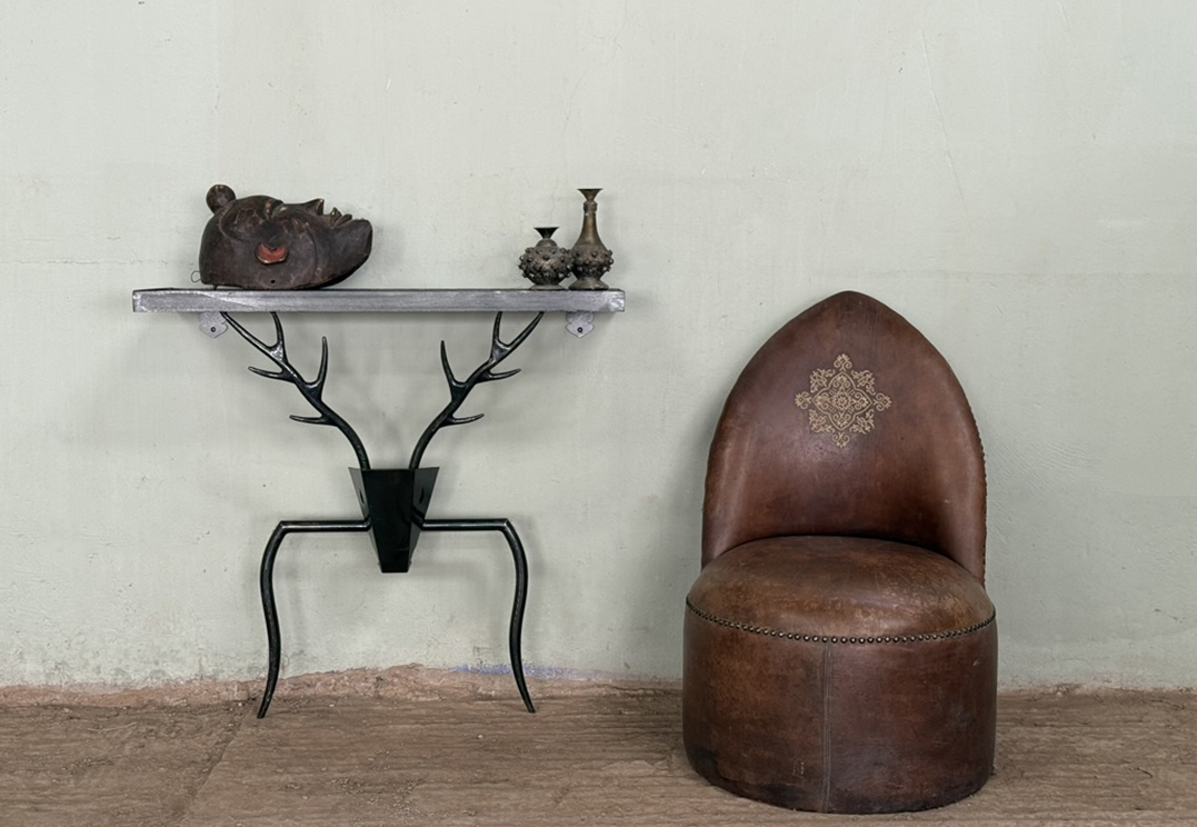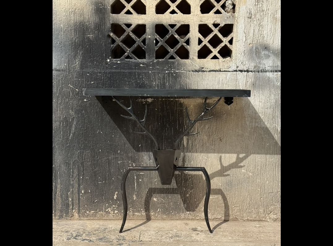 Console « Le grand Cerf » Profondeur = 30cm Largeur = 90cm Hauteur = 85cm 1.100,00€ TVAc Plateau non compris Autres dimensions : sur mesure (+10%)