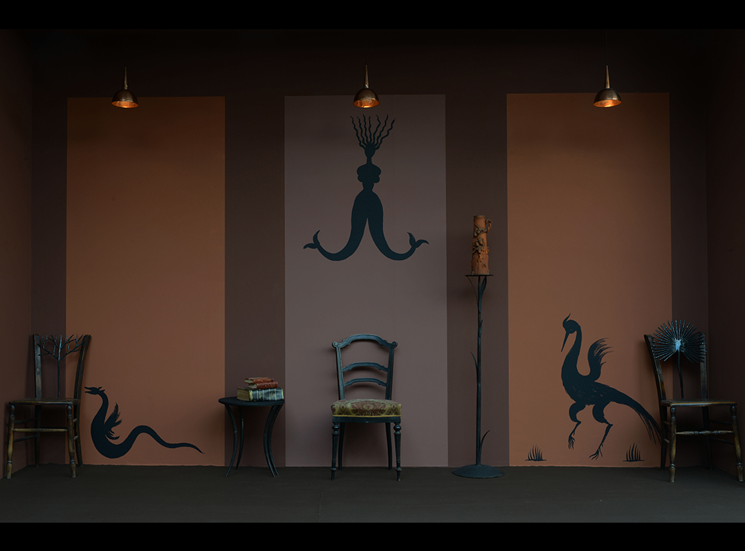 Perchoirs «Arbre», «Herbe», et «Oiseau» en fer forgé :