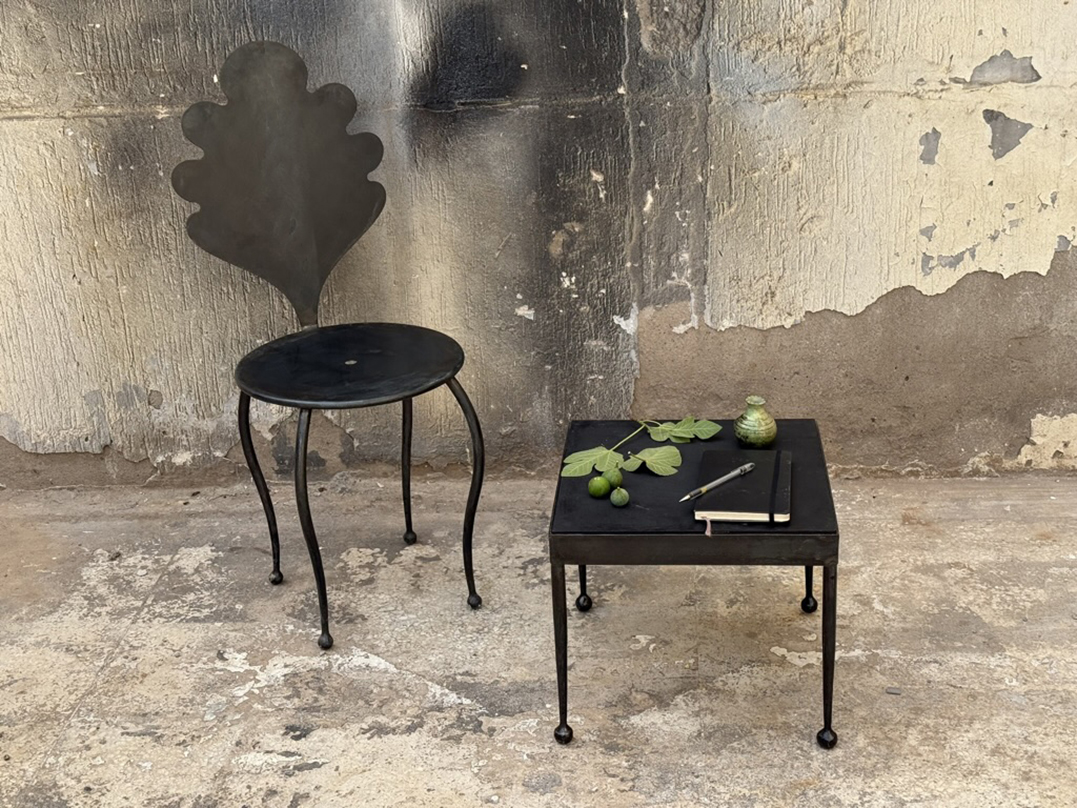 Pied de table basse « Boules » en fer forgé