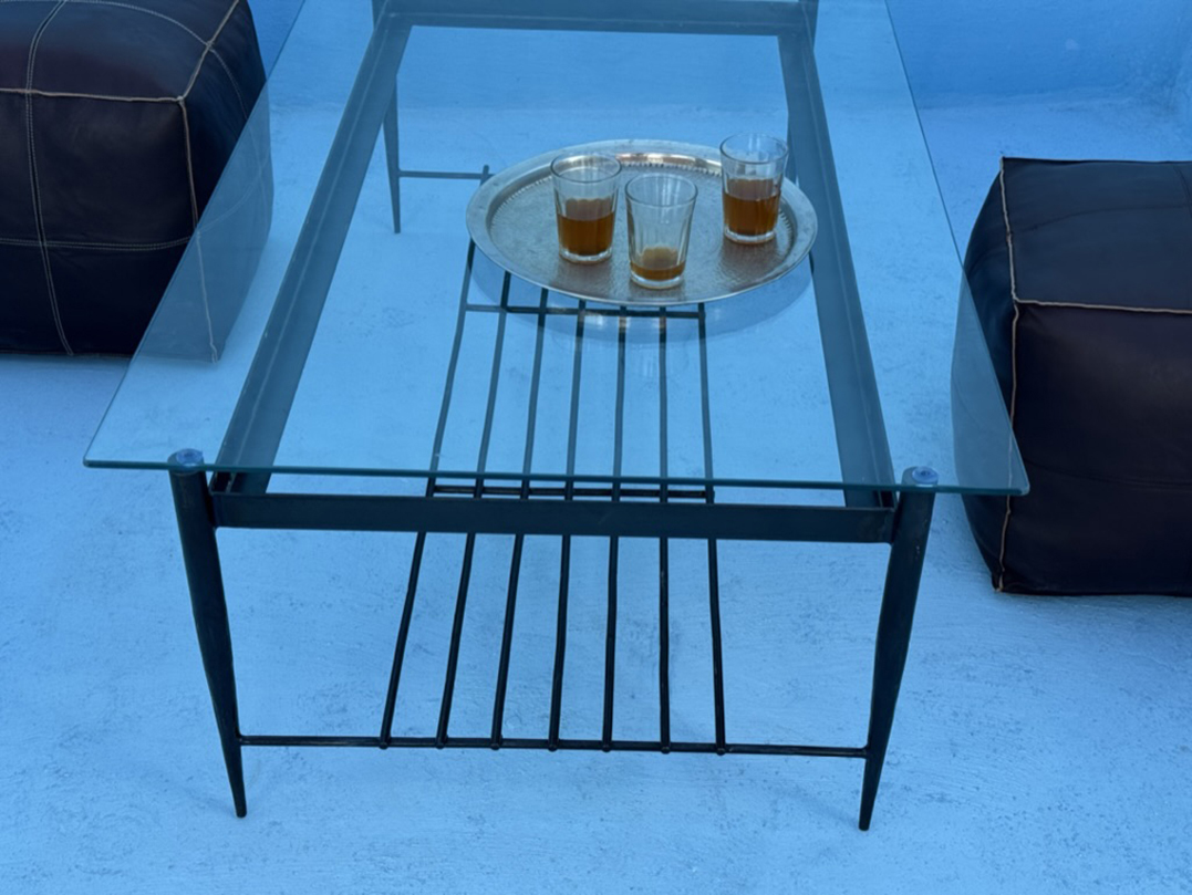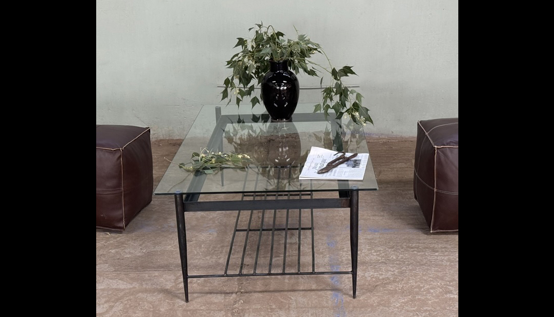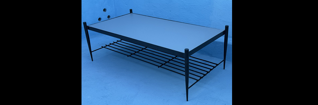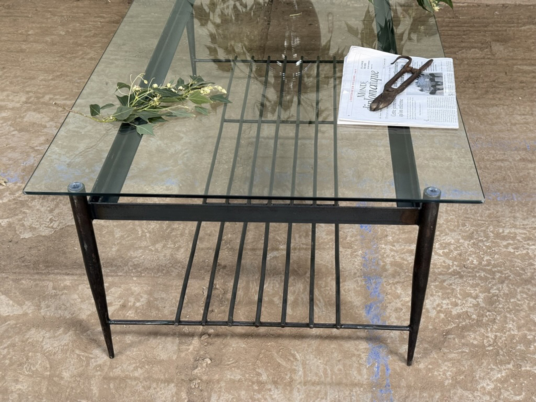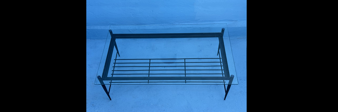 Pied de table basse « Roseau » en fer forgé Longueur = 127cm Largeur = 66cm 1.500,00€ TVAc Plaque de verre ou plateau non compris