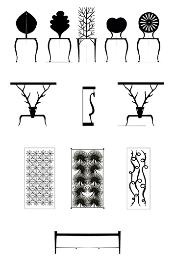A collection of 5 chairs, … … a small series of table legs or consoles on the theme of